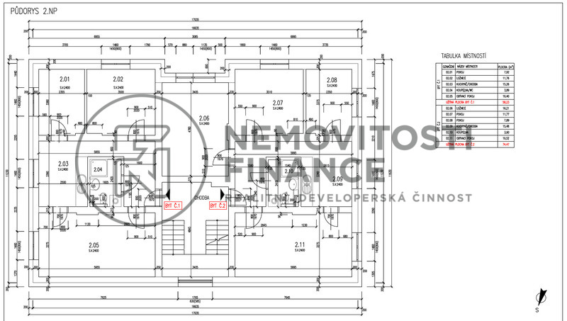 o dispozici 4+1, o celkové podlahové ploše 79,89 m2, umístěný ve 2. NP