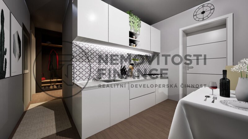 podlahové vytápění celého bytu. V ceně není zahrnuta kuchyňská linka.